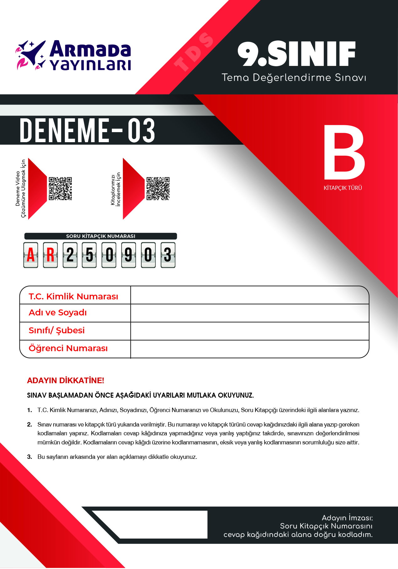 9. SINIF TDS 1. DENEME B KİTAPÇIĞI 2024-2025